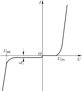伏安特性曲線的左半部分稱為反向特性,由圖1可見,當直流穩(wěn)壓電源中常用的二極管加反向電壓,反向電流很小,而且反向電流不再隨著反向電壓而增大,即達到了飽和,這個電流稱為反向飽和電流,用符號IS表示。