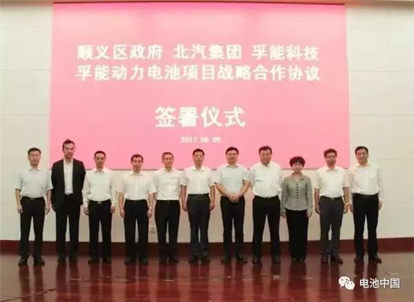 2017年9月9日,“孚能科技(北京)新能源充電機(jī)充電動(dòng)力蓄電池項(xiàng)目戰(zhàn)略協(xié)作協(xié)議簽署典禮”在北京轎車(chē)工業(yè)研制基地舉辦。